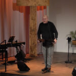 Mikael Tilly predikar, mötesledare Eva Sandell, sång Viola Johansson och Mikael Widlund.…