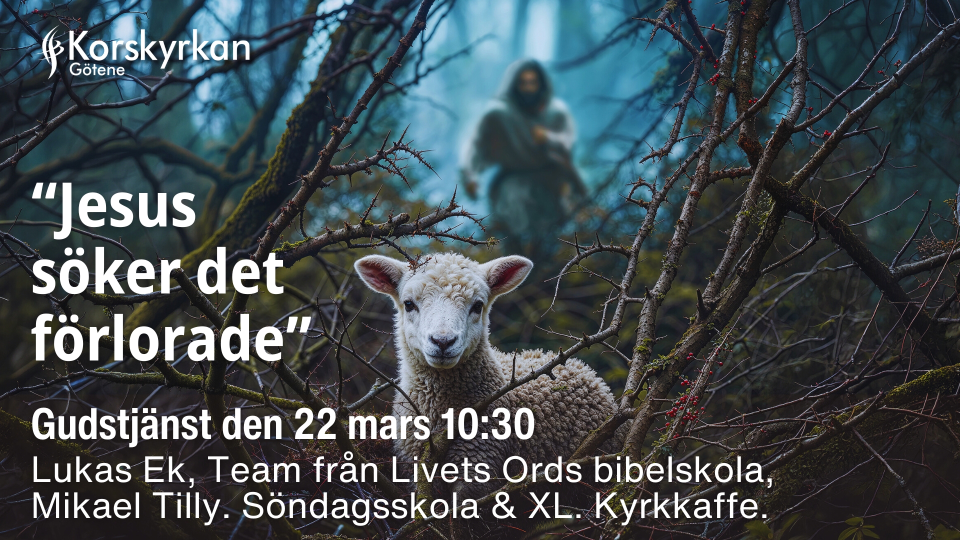 Gudstjänst 22 mars 10:30 Lukas Ek predikar, mötesledare Mikael Tilly, lovsång med Yowhans Habtom med team från Livets Ords bibelskola. Söndagsskola & XL.